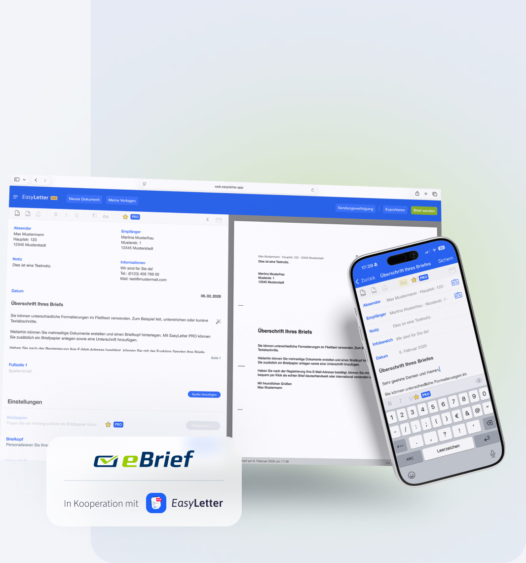 Schreiben Sie Ihre Briefe direkt im EasyLetter Webportal oder in der EasyLetter App