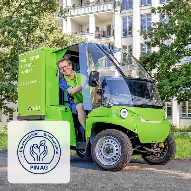 Within the City of Berlin, we deliver post using electric vehicles – and for our customers, we offer climate-friendly recycled paper.